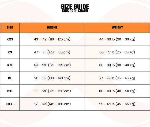 KXXL | 4.7' - 5.1' (145 – 160 cm) | 99 - 121 lb (45 – 55 Kg) |